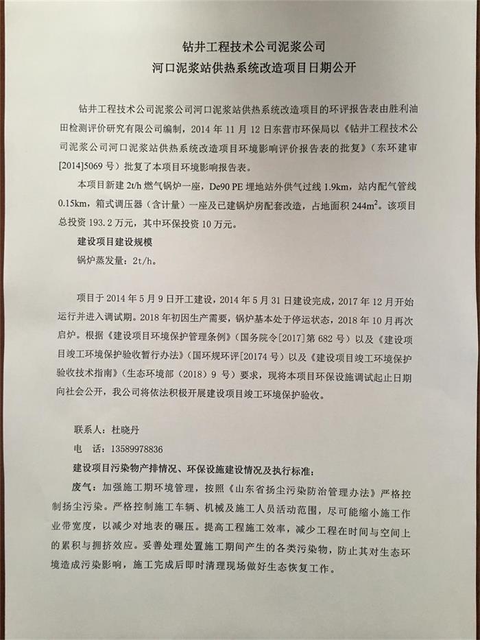 鉆井工程技術公司泥漿公司河口泥漿站供熱系統改造項目日期公開