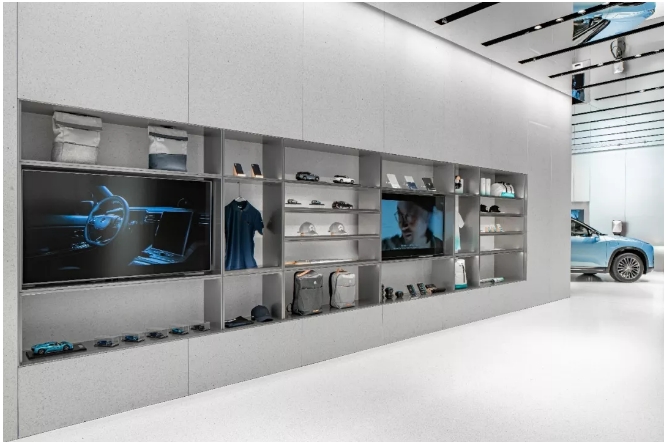 國(guó)際莊的NIO House,一份科技感與時(shí)尚設(shè)計(jì)融合,被分隔開的兩個(gè)Gallery區(qū)域,給予人們更寬更廣的展示空間,沉穩(wěn)中又有著跳躍的科技音符。