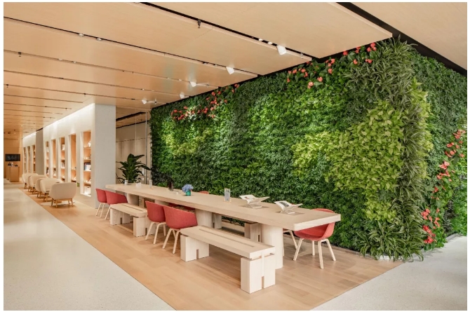 層層疊疊的綠色植物墻和兩面觀景落地窗構(gòu)成了一個(gè)獨(dú)屬聚會(huì)的空間,和朋友們來一場(chǎng)走心的分享吧!